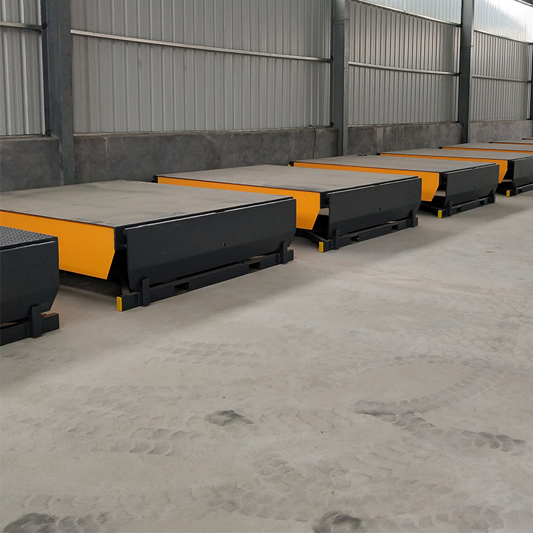 固定式登車橋是實現(xiàn)貨物快速裝卸的專用輔助設(shè)備,它的高度調(diào)節(jié)功能使用貨車與庫房的貨臺之間架起一座橋梁,叉車等搬駛及貨車內(nèi)部進行貨物的批量裝卸,僅需單人作業(yè),即可實現(xiàn)貨物的快速裝卸。它使企業(yè)減少大量勞動,提高工作效率,獲取更大經(jīng)濟效益。